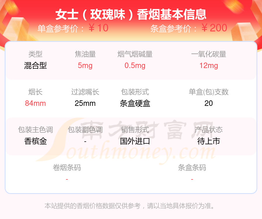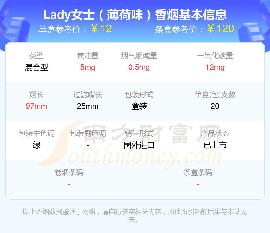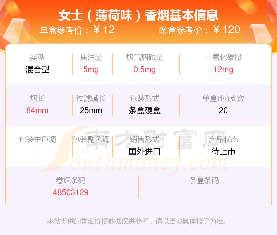 女士(薄荷味)参考价12元/包、Lady女士(薄荷味)参考价12元/包、女士(玫瑰味)参考价10元/包等。