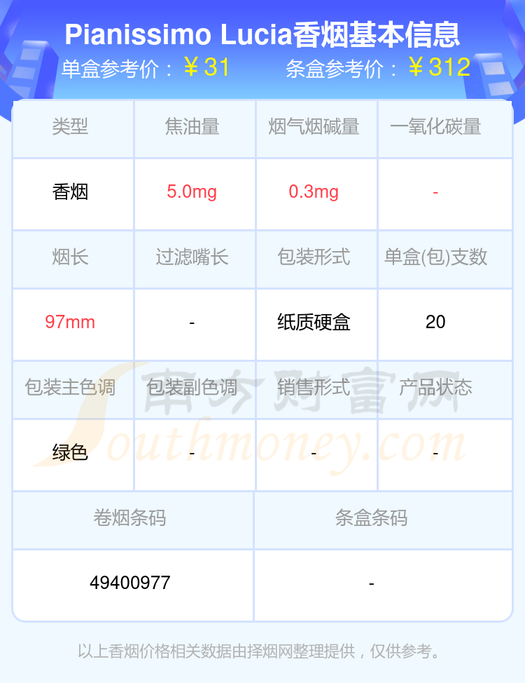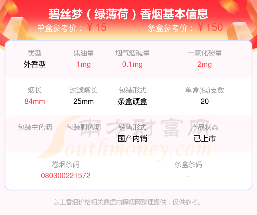 以上香烟数据整理于网络,请自行核实相关内容,因此所引起的后果与本站无关。
