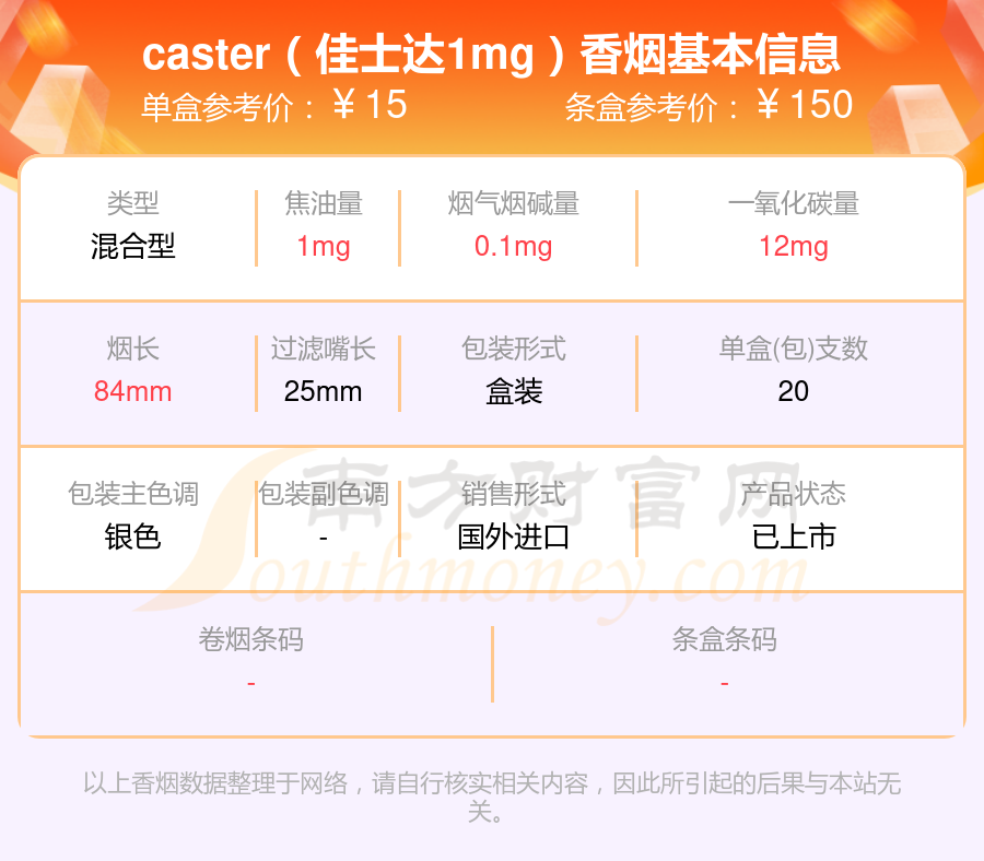 本站提供的香烟价格数据仅供参考,请以当地具体报价为准。