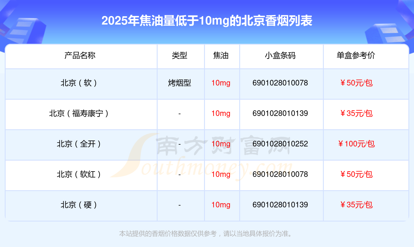 北京(软)参考价50.0元/包、北京(福寿康宁)参考价35元/包、北京(全开)参考价100元/包、北京(软红)参考价50元/包、北京(硬)参考价35元/包等。