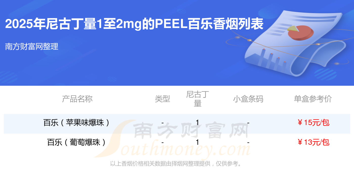 盘点!PEEL百乐香烟尼古丁量1至2mg的烟列表