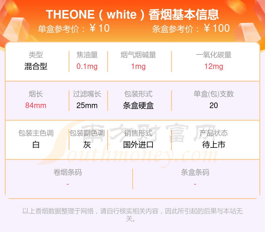 择烟网为大家盘点了尼古丁量1mg以下的THE ONE香烟,有THEONE(white)、THEONE(org)、THE ONE(薄荷)等,详细价格如下:
