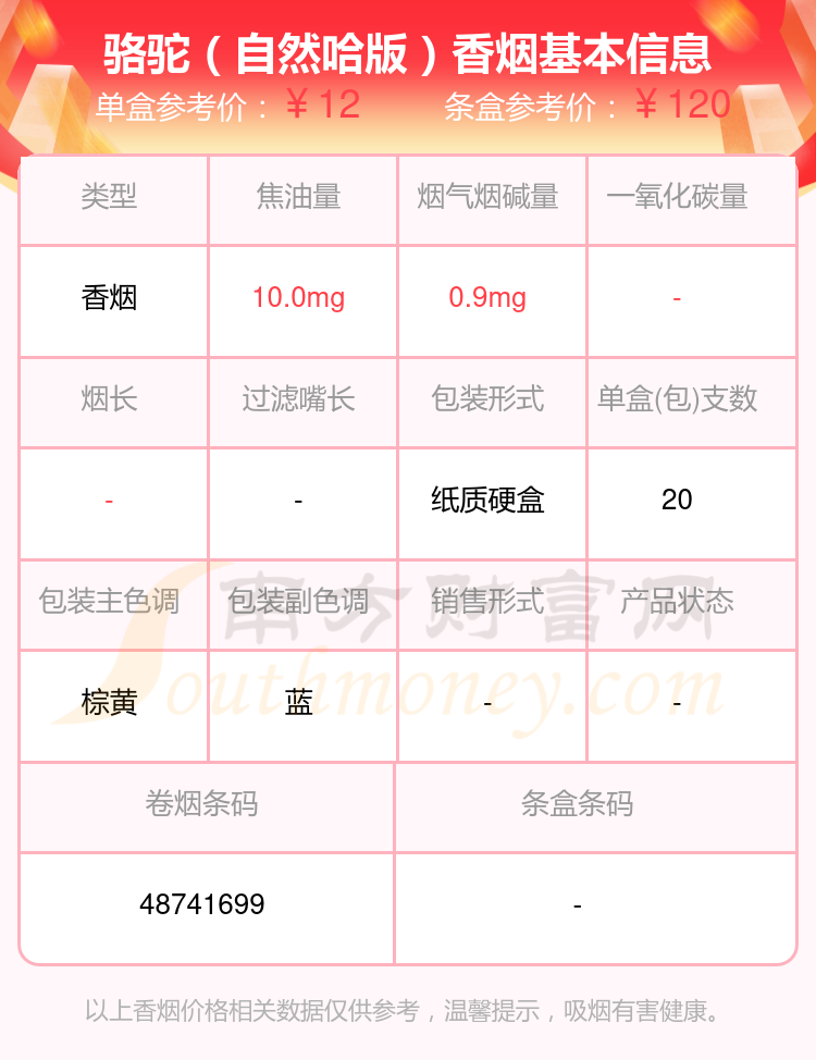 以上香烟价格相关数据仅供参考,温馨提示,吸烟有害健康。