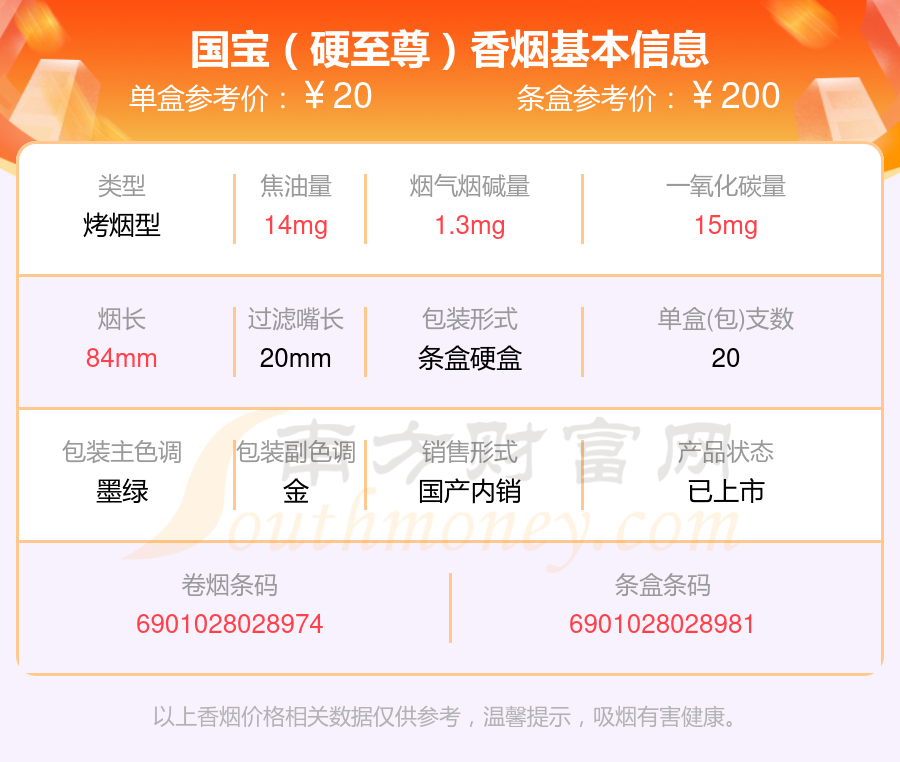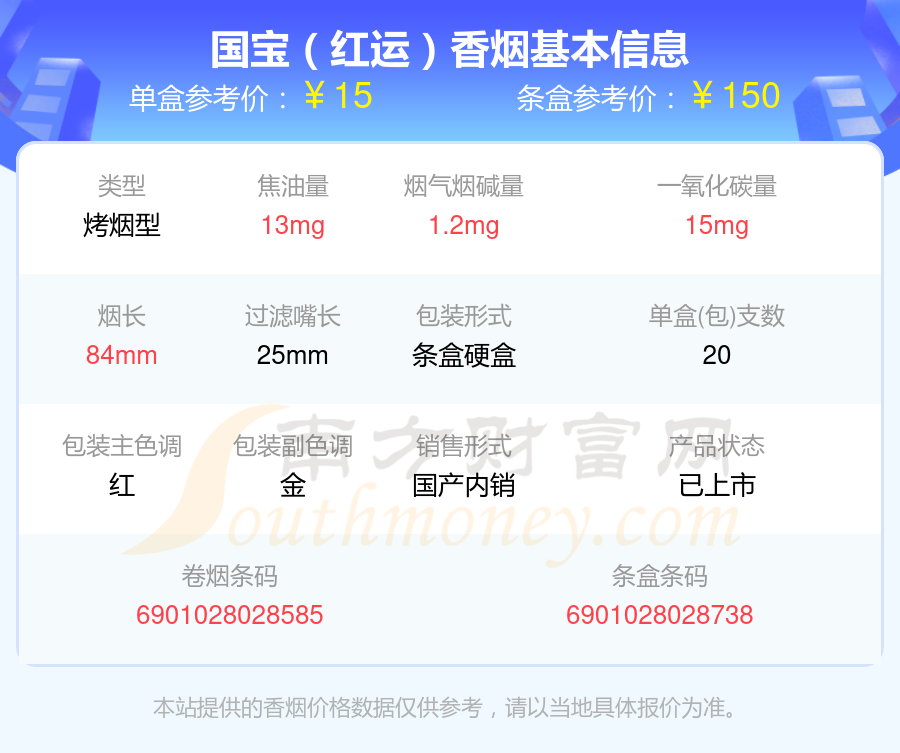 尼古丁低于4mg的国宝香烟有哪些?择烟网为大家整理盘点,分别有:国宝(好运红)、国宝(至尊出口)、国宝(硬至尊)、国宝(银特醇)、国宝(红运)、国宝(欢乐出口)、国宝(新概念)、国宝(9mg出口)等,具体价格如下: