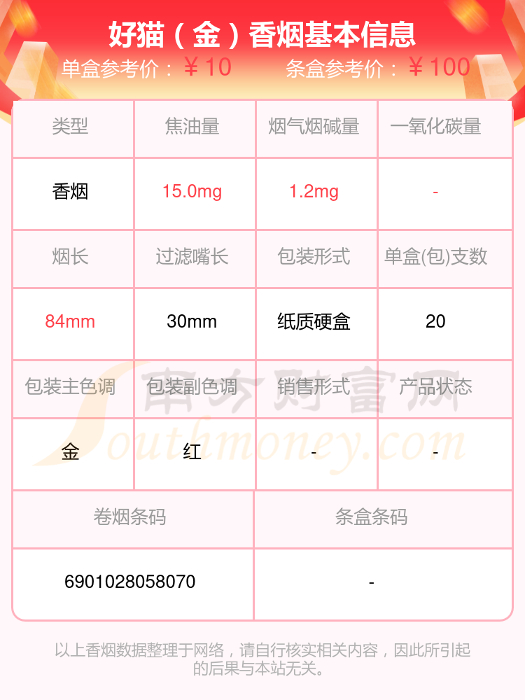 择烟网为大家盘点了好猫香烟焦油量8到15mg的,分别有好猫(如意)、好猫(招财猫1600)细支、好猫(天赋)、好猫(富贵)、好猫(金)、好猫(步步高)、好猫(猴王磨砂)、好猫(炫蓝)、好猫(金延安)、好猫(吉祥)等,具体价格如下: