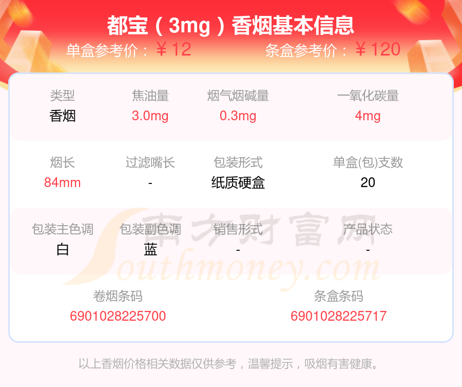 烟碱低于0.3mg的都宝香烟有哪些?择烟网为大家整理盘点,有都宝(3mg)、都宝(纯正1号)等,详细价格如下: