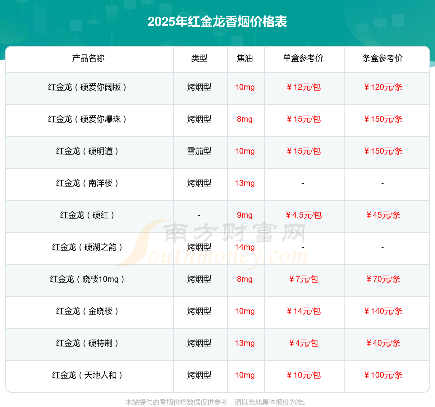 1916年红金龙卷烟由南洋兄弟烟草公司创牌,二十世纪20年代,红金龙畅销中国。至今红金龙旗下形成了红金龙(晓楼)、红金龙(圆梦)、红金龙(虹之彩)、红金龙(火之舞)、红金龙(九州腾龙)等等多个品种和系列,形成“烟草本味,饱满醇厚”的独特个性,被誉为中国精品类卷烟品牌的“四小天王”之一。