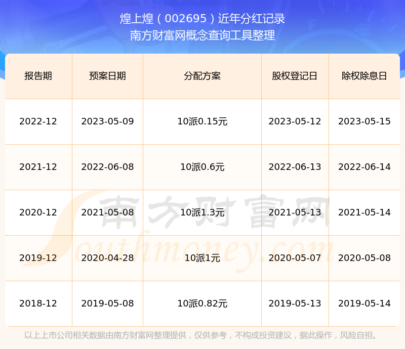 煌上煌最新一次公布的分红方案:10派0.15元。