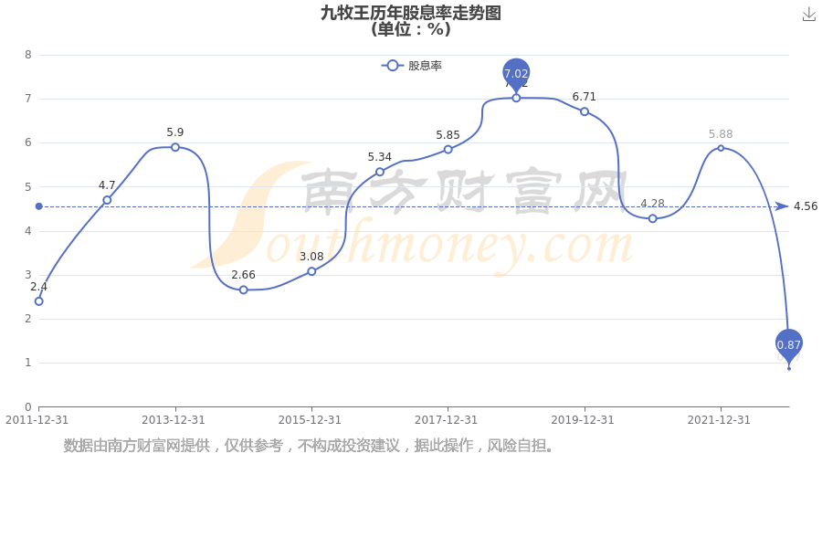 近年九牧王年度股息率走势如下图: