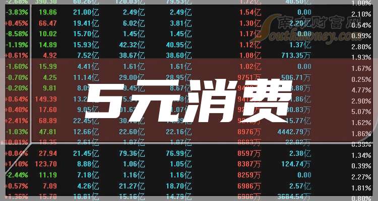 5元消费概念龙头有哪些?据南方财富网概念查询工具数据显示,5元消费概念龙头有: