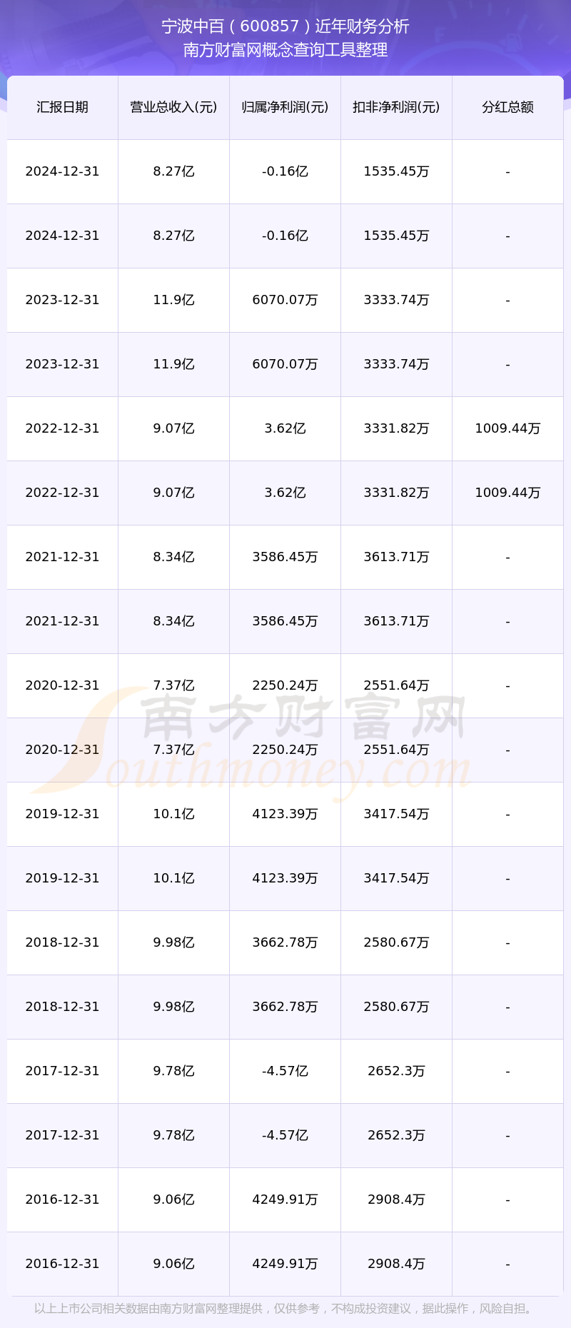 宁波中百公司2024年实现营业收入8.27亿元,同比增长-30.49%;净利润-1605.67万元,同比增长-126.45%;毛利率7.09%。