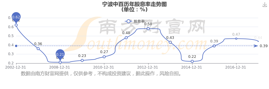 宁波中百最新一次公布的分红方案为10派0.45元。本次权益分派股权登记日为2023年6月15日,除权除息日为2023年6月16日,派息日为2023年6月16日。