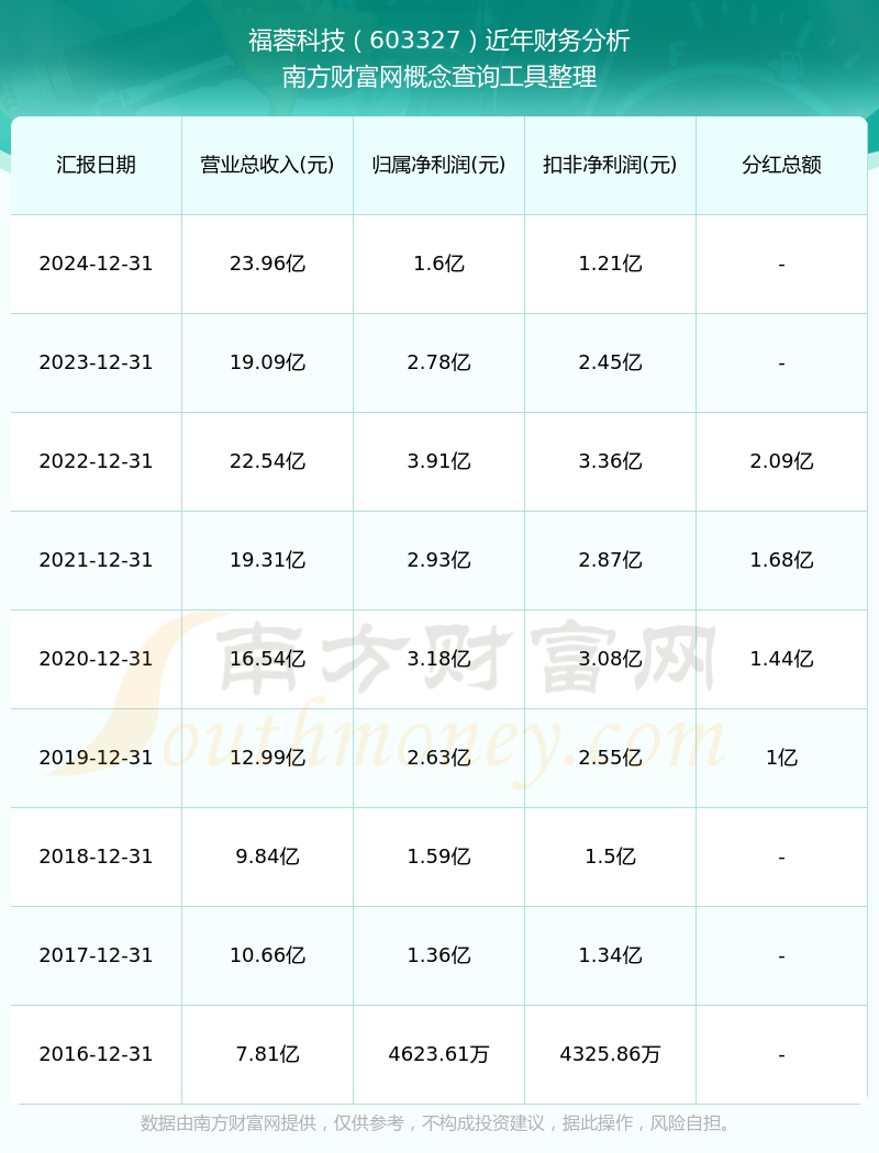 2024年福蓉科技总营收23.96亿,同比增长25.51%;净利润1.6亿,同比增长-42.65%;销售毛利率11.25%。