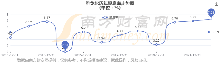 近年雅戈尔年度股息率走势如下图: