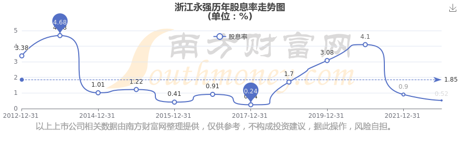 浙江永强历年股息率走势如下图: