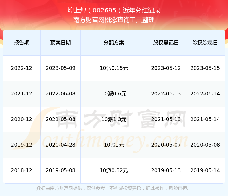 煌上煌最新一次公布的分红方案:10派0.15元。