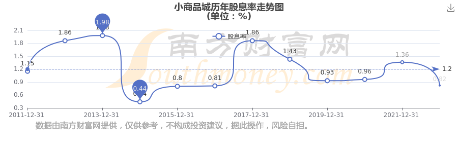 近年小商品城年度股息率走势如下图: