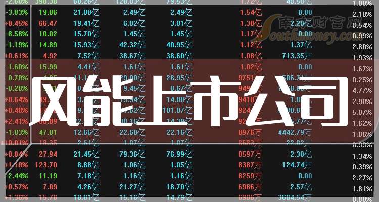 风能股有中国海油、长江电力、阳光电源、华电新能、中国船舶、中国中车、中国核电、中国交建、上海电气、龙源电力等255家上市公司。