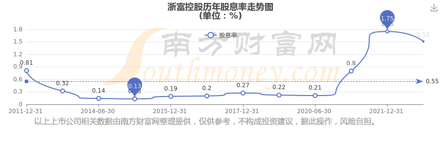 近年浙富控股年度股息率走势如下图: