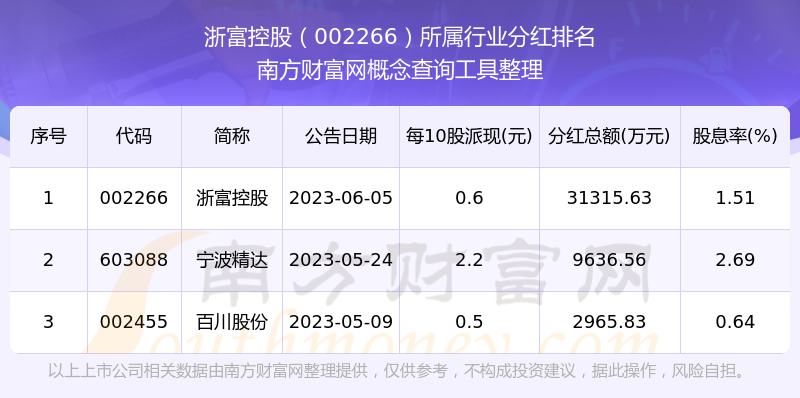 二、浙富控股002266行业分红排名