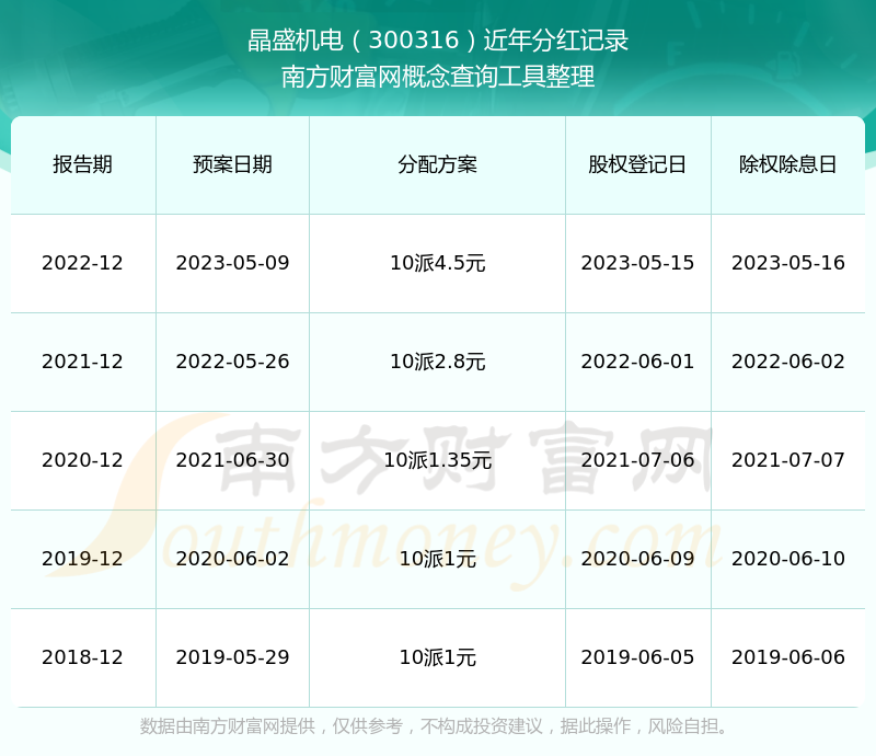 晶盛机电最新一次公布的分红方案:10派4.5元。