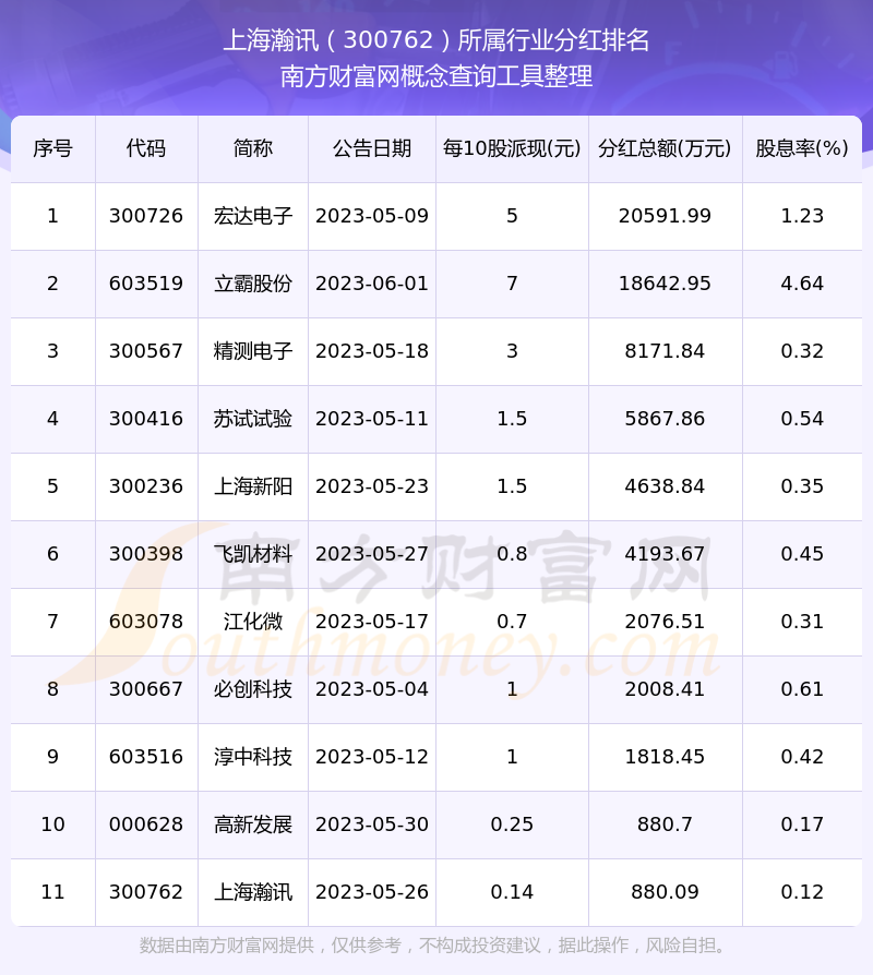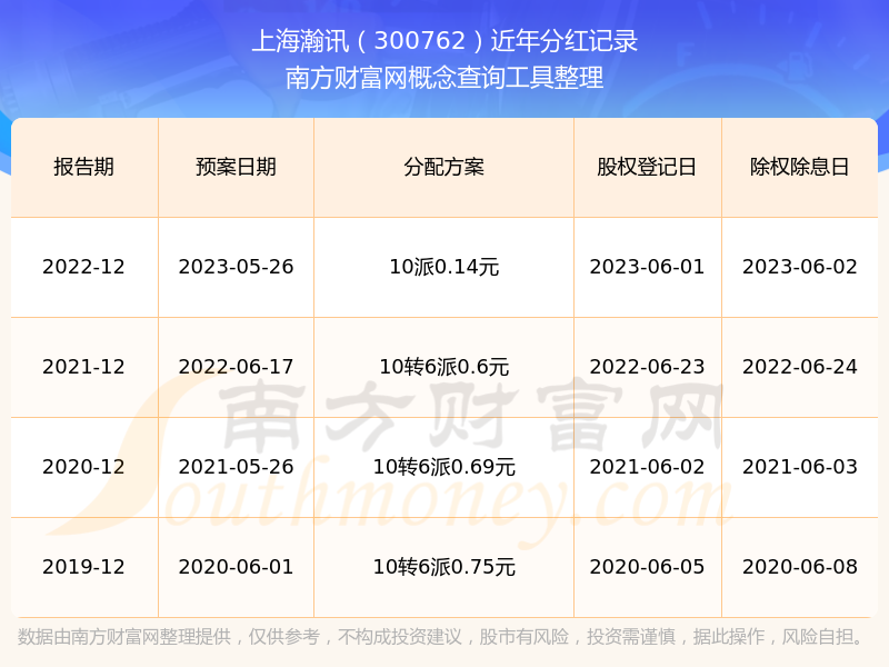 二、上海瀚讯300762行业分红排名