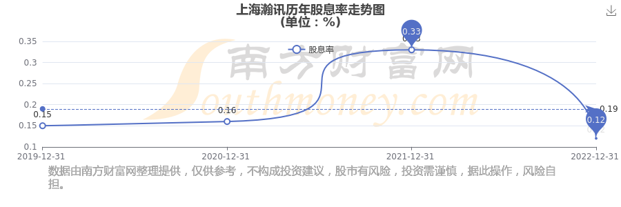 近年上海瀚讯年度股息率走势如下图: