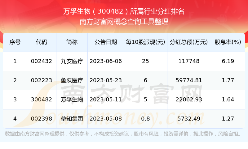 二、万孚生物300482行业分红排名