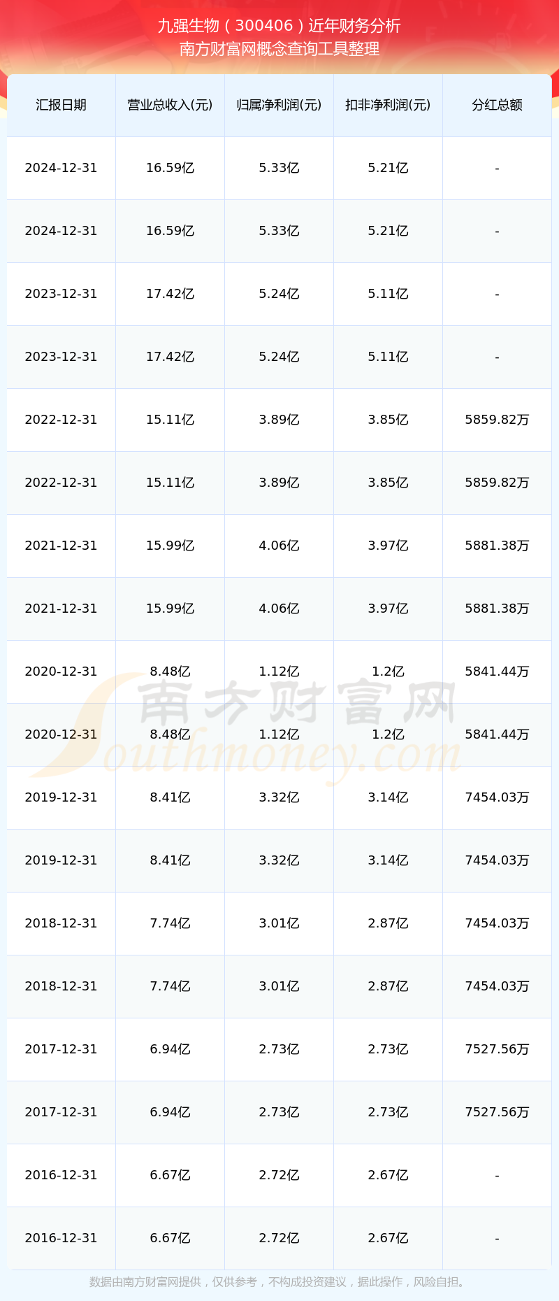 九强生物最新一次公布的分红方案为10派1元。本次权益分派股权登记日为2023年5月19日,除权除息日为2023年5月22日,派息日为2023年5月22日。