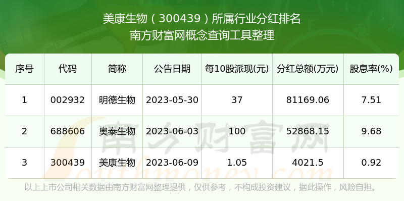 按照南方财富网趋势选股系统统计,美康生物所属行业为体外诊断试剂行业,体外诊断试剂行业分红排名情况如下表: