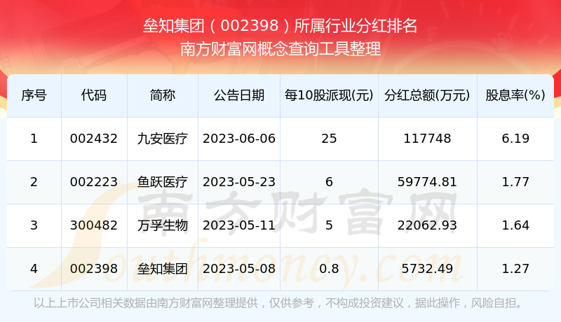 按照南方财富网趋势选股系统统计,垒知集团所属行业为装修建材行业,装修建材行业分红排名情况如下表: