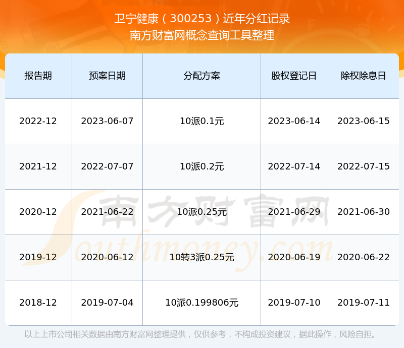 卫宁健康最新一次公布的分红方案:10派0.1元。