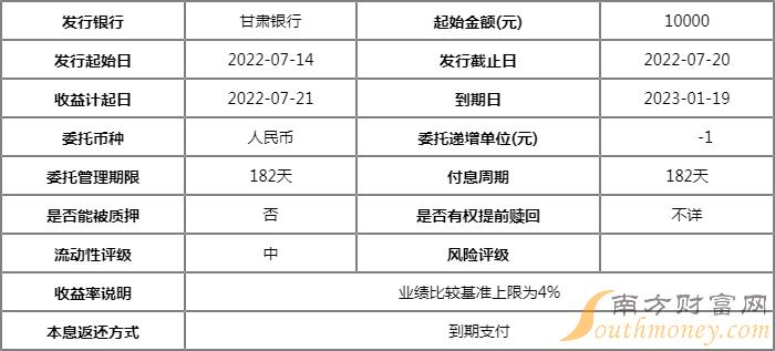 甘肃银行的理财产品一览2022 "汇福"安心盈系列封闭式净值型理财产品一览(2)