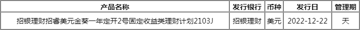招银理财招睿美元金葵一年定开2号固定收益类理财计划2103J怎么样?