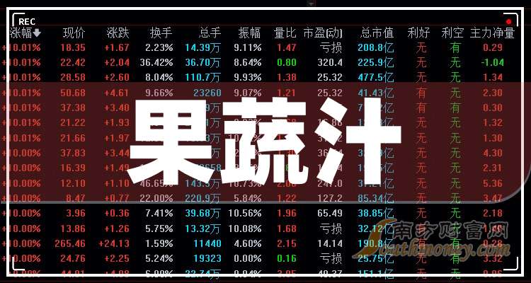 据南方财富网概念库数据显示,果蔬汁题材公司有:
