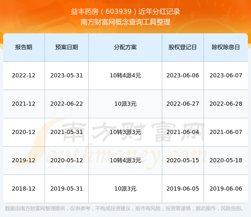 益丰药房最新一次公布的分红方案:10转4派4元。