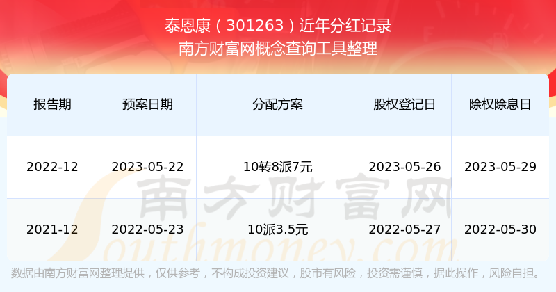 泰恩康最新一次公布的分红方案:10转8派7元。