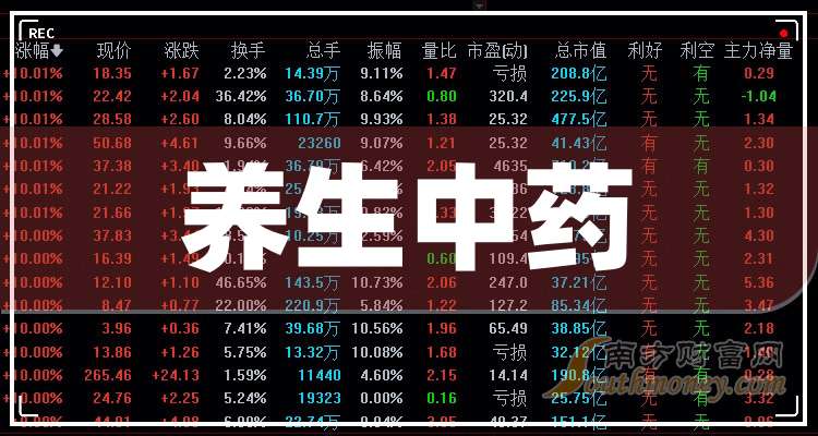 据南方财富网概念库数据显示,养生中药受益公司有: