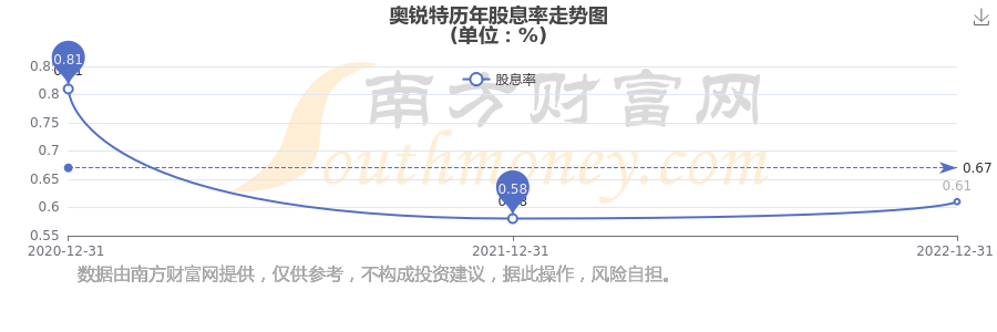 近年奥锐特年度股息率走势如下图: