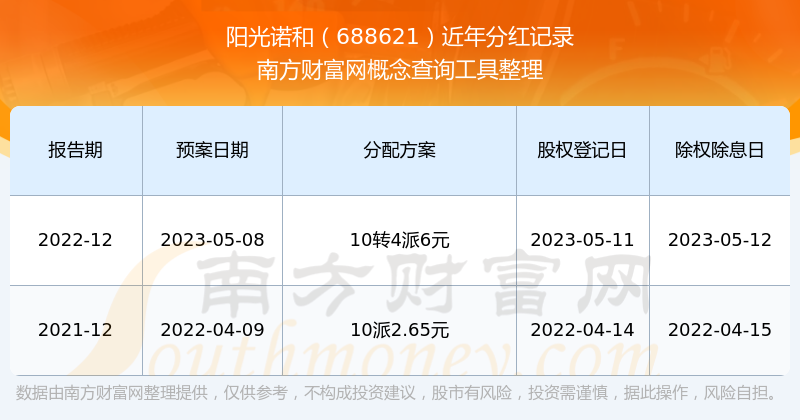 阳光诺和最新一次公布的分红方案:10转4派6元。