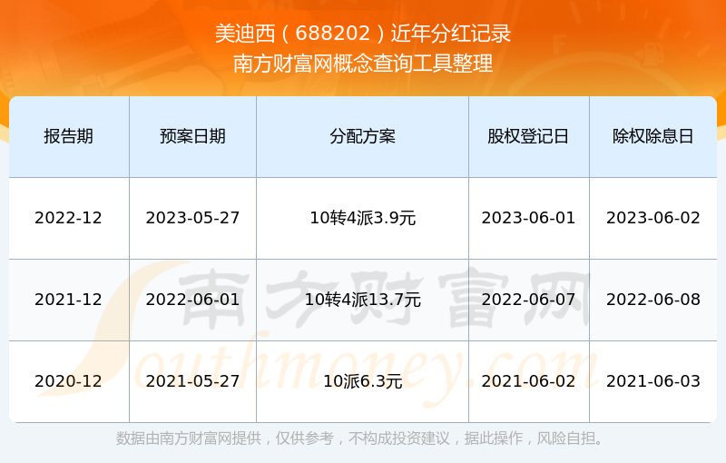 美迪西最新一次公布的分红方案:10转4派3.9元。