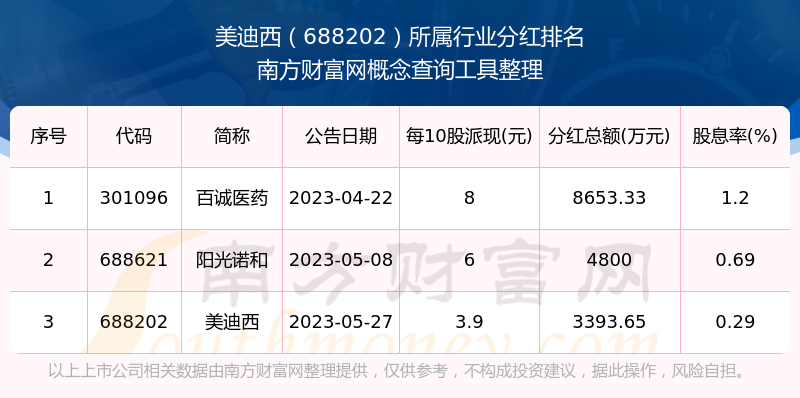 按照南方财富网趋势选股系统统计,美迪西所属行业为药学研究行业,药学研究行业分红排名情况如下表: