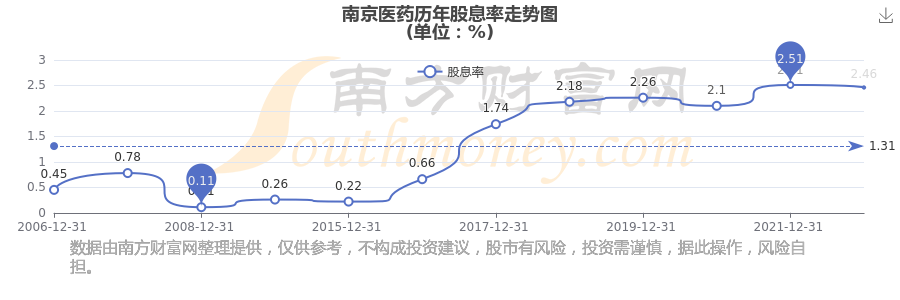 近年南京医药年度股息率走势如下图: