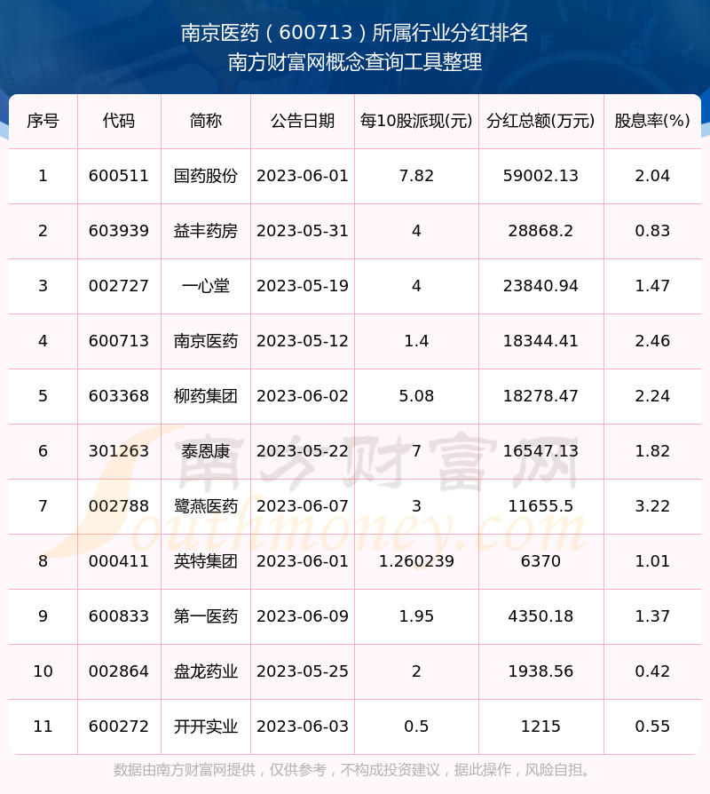 二、南京医药600713行业分红排名