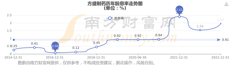 近年方盛制药年度股息率走势如下图: