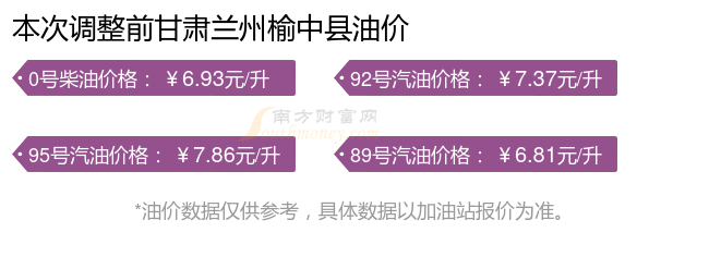 甘肃兰州榆中县今日油价多少钱一升_10月19日今天的汽油价格多少