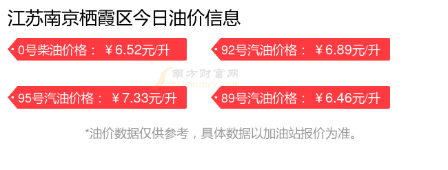 5月25日,江苏南京栖霞区汽油、柴油每升的价格是多少?本次油价调整时间是5月20日,92号汽油为6.89元,减了0.18元,减幅达2.55%;95号汽油为7.33元,减了0.19元,减幅达2.53%;89号汽油为6.46元,减了0.17元,减幅达2.56%;0号柴油为6.52元,减了0.18元,减幅达2.69%。