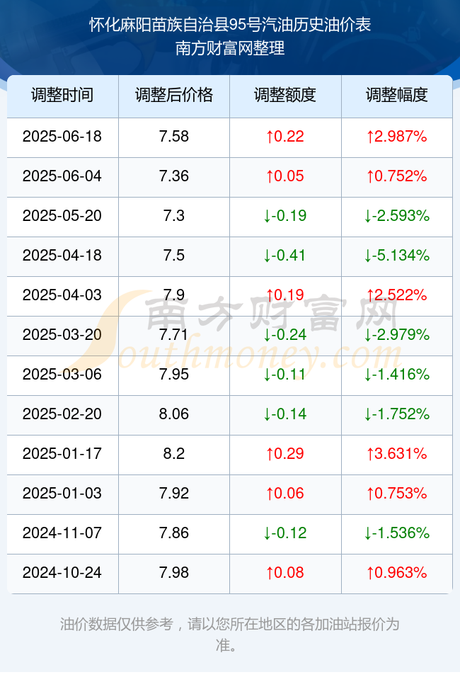 ??化麻阳苗族自治县95号汽油历史油价走势图