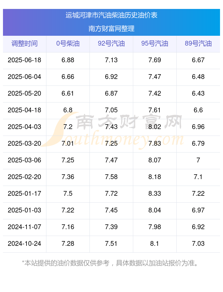 运城河津市历史油价表