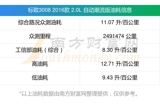 标致3008 2016款 2.0L 自动潮流版百公里油耗需要多少呢?每公里大概多少钱?(7月20日)